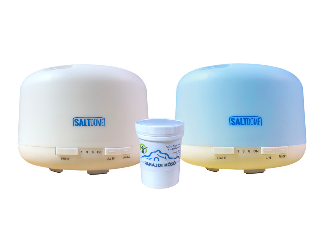 Kettő darab SaltDome sóterápiás készülék + 1 tégely parajdi természetes kősó kedvezményes árú csomagban.